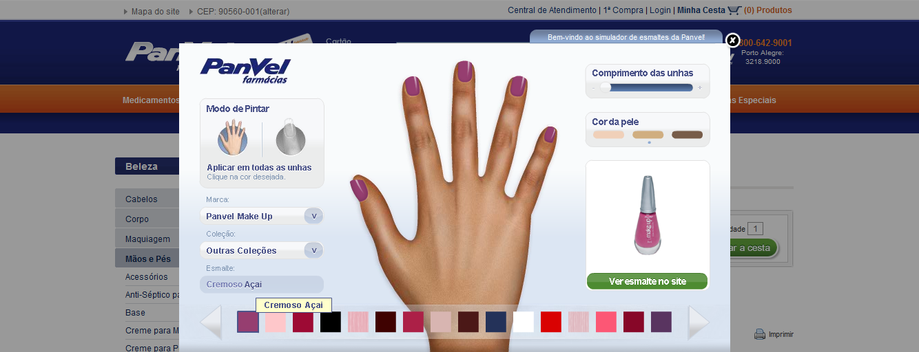 No site você também vai encontrar o Simulador de Esmaltes da Panvel, claro que as cores vão variar um pouco, pois estão sendo vistas na tela do seu computador. Mas é bem divertido. Veja como é facil: